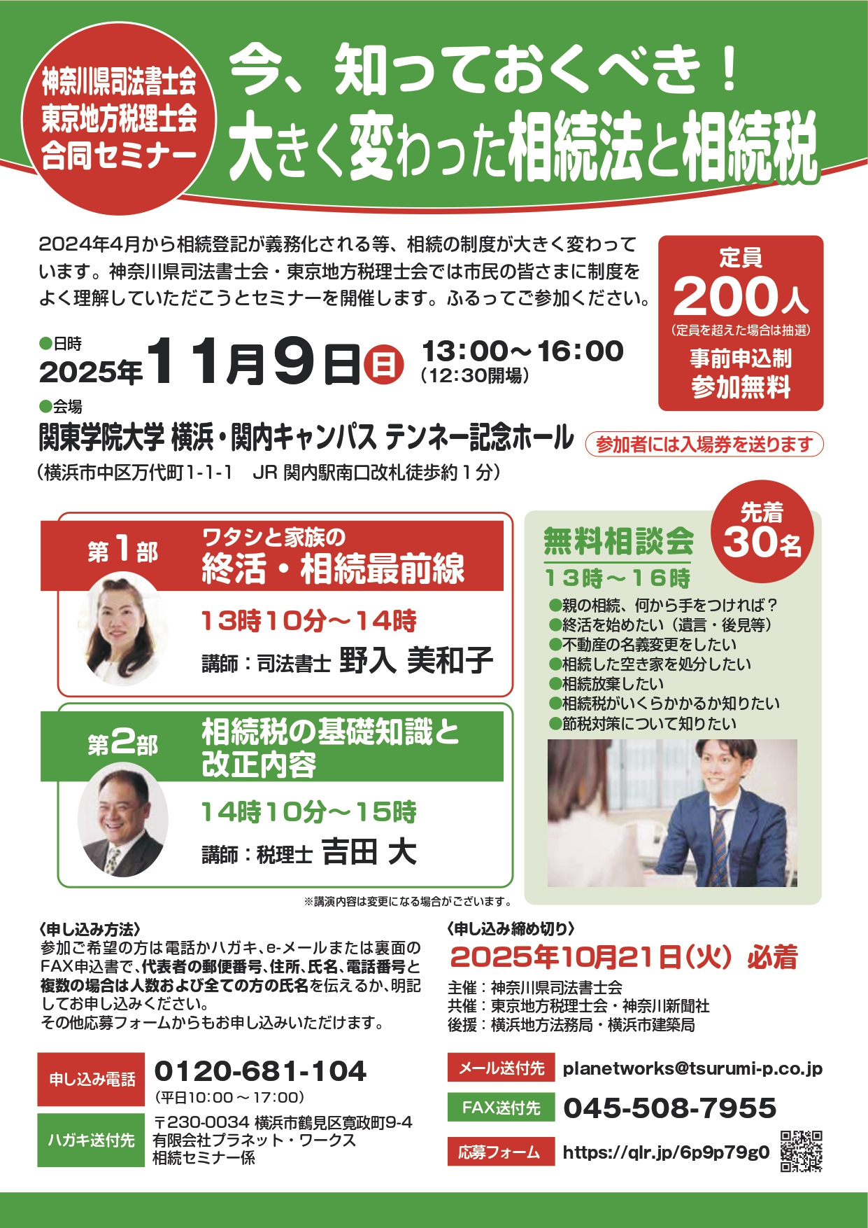 - 司法書士会と税理士会共催による相続セミナー開催のお知らせ