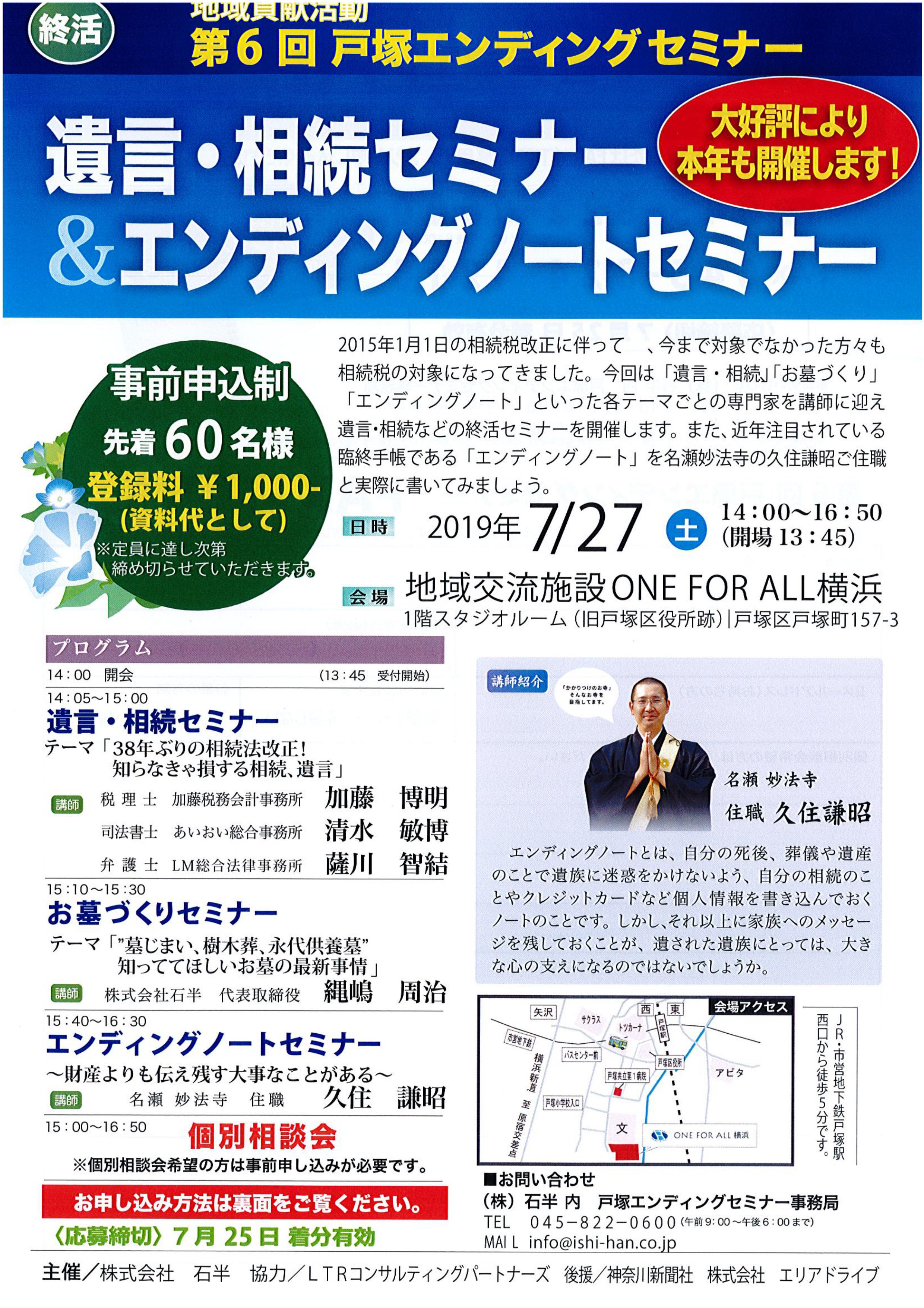 【ご案内】2019 .07.27「第6回 戸塚エンディングセミナー」