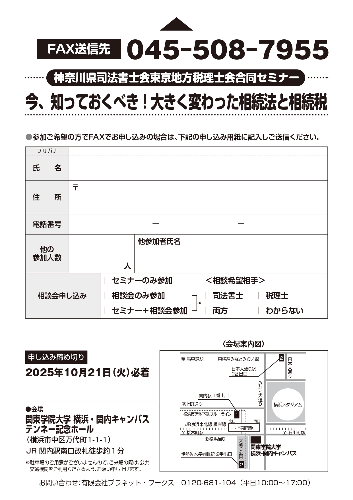 司法書士会と税理士会共催による相続セミナー開催のお知らせ